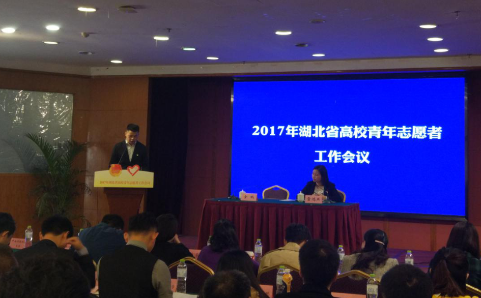 (通讯员 叶之培)2017年湖北省高校青年志愿者工作会议在武汉市洪山广场举行。团省委副书记金鹏、青年志愿者服务中心负责人雷鸿燕同志,全省各地高校团委负责人和校青协负责人参加了此次会议。我校团委书记邱玉添携校青协负责人曲光浩参会,并在会上作交流发言。
