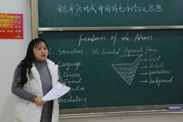 决赛共分为板书设计、内容讲解、专家点评三个环节,每位参赛选手两两分组,在规定的10分钟内在两块黑板上书写师德师风学习心得以及自选课程板书,并用3分钟讲解设计想法,最后由各二级学院教学副院长、督导等组成的专家团进行提问并评分。
