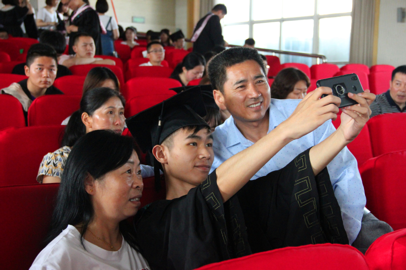 毕业典礼现场,不少毕业生的家长来到了现场,见证儿女们的荣耀时刻。环境与生物工程学院生物制药专业的应届毕业生周帆的母亲蒋女士,在毕业典礼前一天特地从荆州赶来参加女儿的毕业典礼。“心情既激动又开心,很感谢学校老师们对女儿的精心培养,4年来,我深切地感受到女儿逐渐变得独立自强与懂事,从进入学校的青涩少女蜕变成令家长骄傲、学校满意、社会赞许的优秀青年,希望她今后可以脚踏实地走好每一步。” 蒋女士说道。