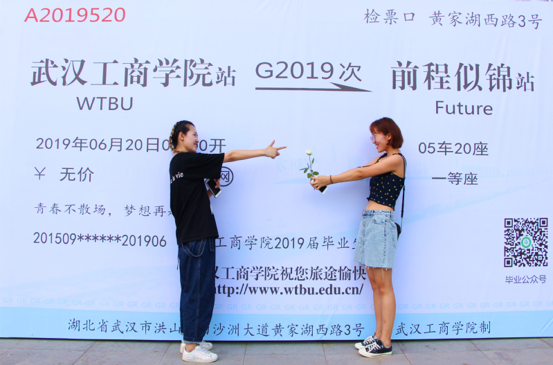 记者在现场发现,毕业典礼当天的现场布置也十分走心,校园内矗立着巨幅的“高铁票”,票面上记录了2019届毕业生大一入校和大四毕业典礼的日期,并写上“必赢优惠y272net站——前程似锦站”与“青春不散场、梦想再起航”的美好祝福,祝贺学生们顺利毕业起航人生新征程,让不少毕业生直呼暖心。新颖的毕业背景墙吸引了众多毕业生花式“比心”拍照留影,用一张张充满“仪式感”的毕业照片纪念自己的大学时光。