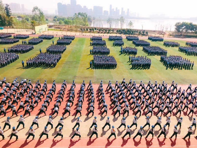“军体拳,准备!”随着教官的一声令下,只见200多名新生迅速整齐有序地组成全新方阵,在教官的指令下,大家目光如炬,动作铿锵有力。不少女生也参与了此项表演,她们毫不逊色,一招一式间颇具巾帼风范,赢得现场热烈掌声。