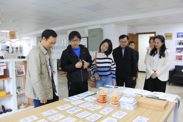 图为王海文院长向王绍斌副处长等人介绍“字绘中国” 见习摄影:张焰