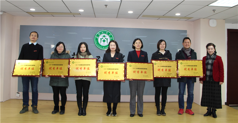 图为熊蕊校长为2019年目标责任制考核优秀单位颁奖 摄影:谭锦涛