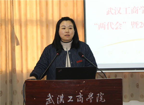 校工会常务副主席苏红做了主题为《坚守立德树人初心使命 凝聚科学发展奋斗力量》的工作报告。她总结说,2019年教代会、工会围绕学校中心工作,在推进学校民主政治建设、促进教师队伍发展、引领校园文化、关注民生、加强自身建设等方面都取得了一定的成绩,她从如何增强民主管理的凝聚力、服务师生的执行力、工会工作的吸引力、工会工作的感染力、文化校园的亲和力五个方面汇报了2019年学校工会开展的各项工作。她表示,2020年,是学校总结经验、谋划全局、奠定基础、集中攻坚、创新发展的关键之年,工会将不忘初心、牢记使命,以围绕立德树人、事业发展、凝心聚力、和谐稳定、学生成长成才为发展理念,以工会工作制度化、规范化、标准化、精品化为发展主线,促进学校工会工作全面提速提升,改革创新,奋发有为,不断开创工会工作新局面。