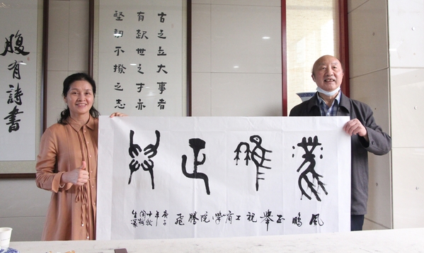 参观完校园,老领导们在国学馆挥毫泼墨,为学校留下了珍贵的墨宝。
