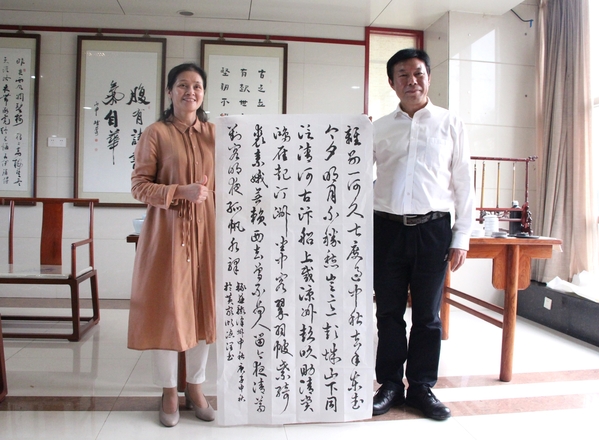 图为董事长与陈伟及其墨宝合影 摄影:邓太莎