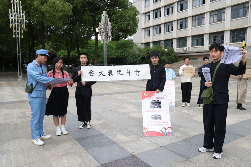 快闪现场学生演绎青年代表大会情景 摄影:张誉东