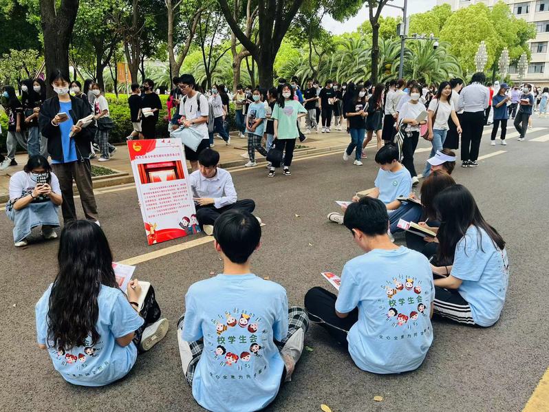 快闪现场学生宣传展示中国共青团更名史 摄影:李若源