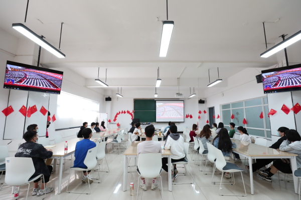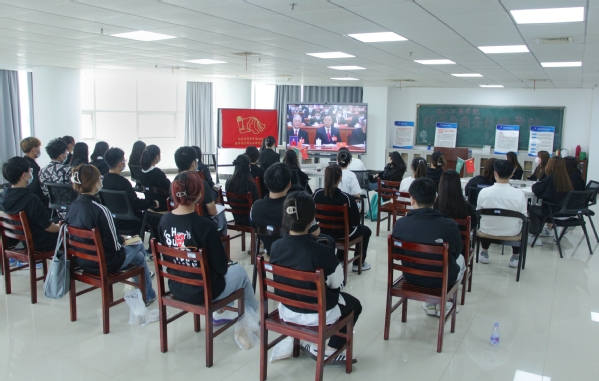 图为物流学院师生观看党的二十大开幕大会 摄影:李若源