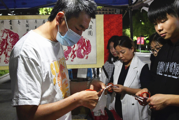 新闻中心讯(记者周昕 廖雪韵)4月26日至27日必赢优惠y272net举行第二届传统文化节,中华文化促进会剪纸艺术委员会会员金俊安、第四代韩氏虎头鞋及剪纸传承人韩恒涛、武汉民间文艺家协会会员李丹丹、“武汉蛋雕第一人”纪道功走进校园,演示了剪纸、香囊、植物扎染和蛋雕等传统技艺,吸引了大批师生参与到“非遗”的体验、传播中来。
