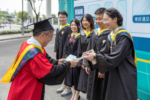 孔建益校长还在毕业典礼上列举了不少2024届毕业生拼搏奋斗的案例,他们有的入职世界五百强企业,有的考取国家公务员、国内“双一流”建设高校以及世界名校硕士研究生,还有的在创新创业以及各类竞赛中绽放光彩。他动情地对毕业生说:“心中有光、脚下有路、全力以赴的你们,是校园里最耀眼的光芒,是母校最大的骄傲。”
