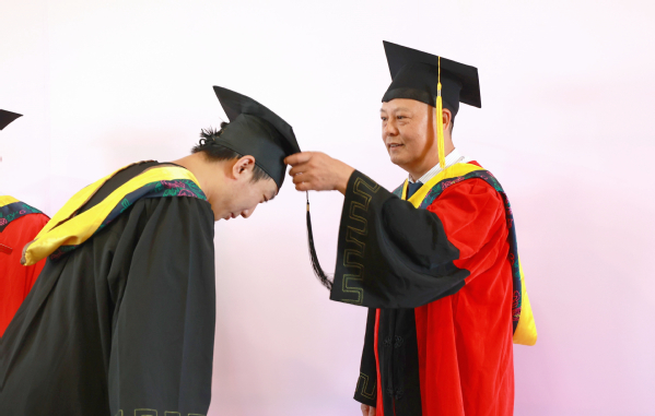 图为刘生元书记为学生拨穗 摄影:胡毅