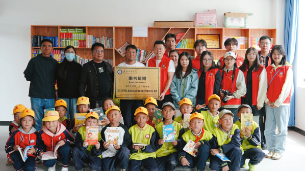 现场,康雄乡中心小学副校长尼玛扎西、索巴及教务主任多吉,向关爱队带队老师张力、叶之培授予“图书捐赠”纪念牌匾。“这些图书对藏族孩子们来说很珍贵,它们就像是一扇扇窗,引导孩子们了解外面的世界,让他们的课余生活更丰富。”尼玛扎西对志愿者们的捐赠表示感谢。