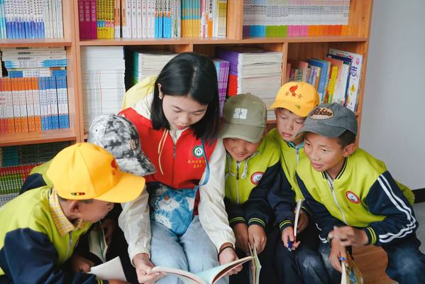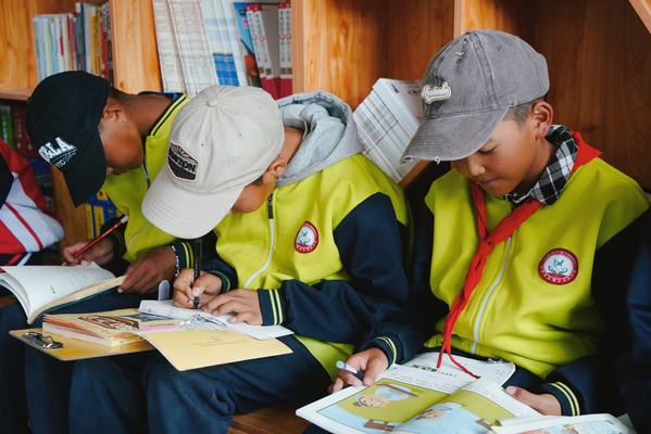 今年暑期,“火凤凰”援藏教育关爱队如期而至,他们除了开展为期一周的支教活动外,还参与了图书室内图书的分类、编号、整理工作,将一本本图书整整齐齐地分类摆放到书架上。当看到孩子们迫不及待地翻看图书时,志愿者们的眼中满是欢喜。