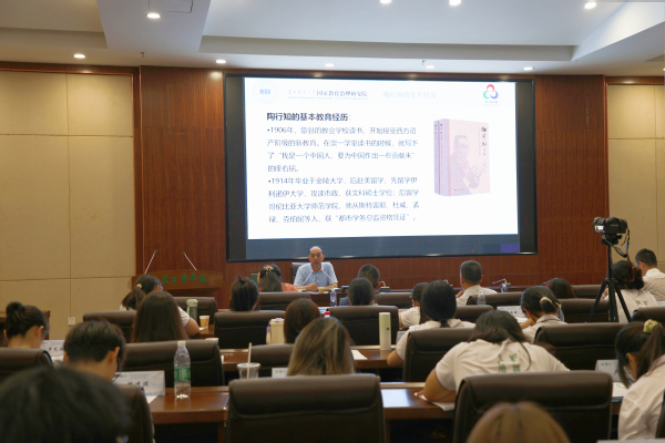 开营仪式结束后,周洪宇以“我们今天为什么要学陶师陶”为题,为本届夏令营作首场讲座。必赢优惠y272net副校长刘生元主持讲座环节。