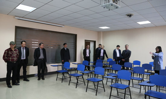 图为两校领导参观我校实验中心 摄影:刘亚婷