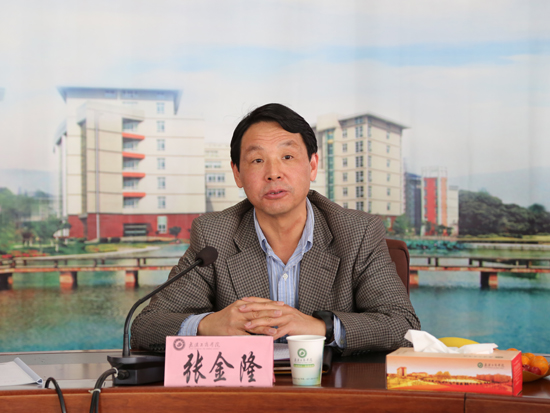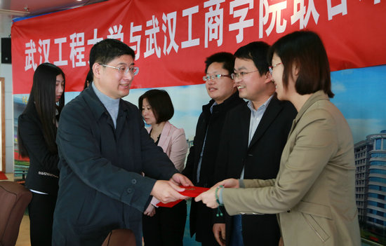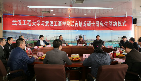张金隆校长发表讲话。他表示,学校与武汉工程大学签订联合培养硕士研究生协议,这是学校发展中的一件大事,标志着学校在推进学科建设、提升办学层次和办学水平方面迈出了新的步伐,非常感谢武汉工程大学提供了这样一个合作的平台。他还介绍了学校的基本情况。他说,作为一所从独立学院转设而来的民办普通本科高校,学校发展经历了三个阶段:2011年转设以前是办大学上规模,主要是进行规模化建设,转设后开始更为注重内涵建设,致力于办一所高质量的民办本科大学,自2012年以来的3年多时间里,学校注重特色学科专业的建设,“工商”的特色逐渐凸显,并且更注重发展区域经济和社会发展急需的现代服务业相关专业,更为注重提升质量,树立品牌。他表示,管理学院的工商管理等专业是学校的老牌专业,此次与武汉工程大学开展合作,不仅有利于提升本校管理学院教师的学术水平和学院的学科专业建设水平,也有利于学校今后申请硕士点。此外,他还表示,学校的现代物流与商务湖北省协同创新中心、湖北商务服务发展研究中心、省级重点实验教学示范中心三大基地也可以进行两校的合作,为湖北经济和社会发展服务。
