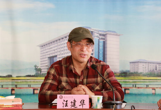 图为武汉工程大学副校长汪建华在会上讲话 摄影:刘亚婷