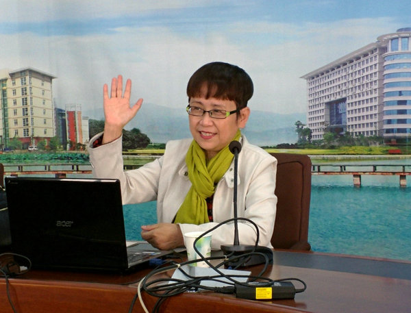 图为物流管理系主任周小芬为讲座做总结 摄影:林倩