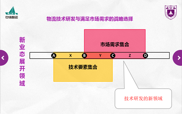 在新业态的诞生问题中通常存在技术的创新和市场创新的优先问题,作为革新者应着重对哪一部分领域进行创新的问题。如下图所示,坐标轴上X指有技术无市场的领域,Z是有市场无技术,Y是市场与技术重合,两者兼具的领域。大部分人看重X即技术创新,但从物流领域来说,应该做的不是X而是Z,有了技术找市场付出的代价大于有市场而需要技术的代价。技术创新后进行市场开发相对困难、风险高,且市场难以满足规模生产的最小条件。所以技术创新的条件是有市场需求。只有在有市场情况下,开发技术才具有价值。