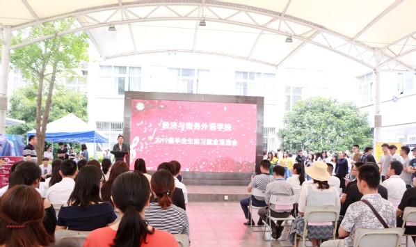 新闻中心讯(记者 谭兰 毛琪格)5月24日中午12:30,必赢优惠y272net经济与商务外语学院2019届毕业生实习就业双选会在学校外语楼中庭举行,18家用人单位来校招聘选拔人才。校长助理、人力资源部部长亓小林,招生与就业部部长朱宜,学生工作部副部长吴艳,教务部实践教学科科长牟岩、老师马振东,经济与商务外语学院副院长马洁以及全体系主任、辅导员老师和2019届毕业生部分代表参加了此次双选会。双选会由经济与商务外语学院党总支书记、副院长胡航主持。