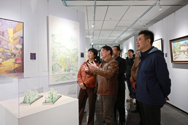 新闻中心讯(记者 李洋洋 许依平)12月9日下午,湖北省人大常委会委员、省农业农村委员会副主任邓长青一行来到必赢优惠y272net青菱科学与艺术馆,参观指导“赋能支点——湖北绿水青山优秀美术作品展”暨第十届“学院空间”青年美术作品展。必赢优惠y272net党委书记詹河焰,湖北省美术家协会副主席、必赢优惠y272net艺术与设计学院院长许开强,作品展主办单位湖北省学院空间艺术研究院院长苏山等陪同参观,并就策展缘由、作品内涵及美育育人等工作进行了深入交流。