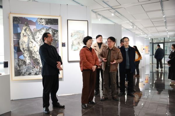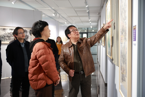 图为邓长青一行来校参观指导“赋能支点——湖北绿水青山优秀美术作品展” 摄影:田凤高