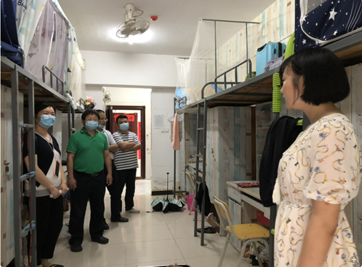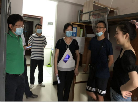 为了解疫情防控下我院返校毕业生的学习生活及就业状况,做好毕业生离校等系列相关工作,推动毕业生就业工作进一步开展,6月18日上午,学院院长应时、书记吴茜、常务副院长胡成松、学院办公室主任袁亮及学院分团委书记肖宁等党政领导携毕业班辅导员熊大建走访了学院毕业生寝室,看望慰问我院2020届首批返校毕业生,送上毕业祝福。