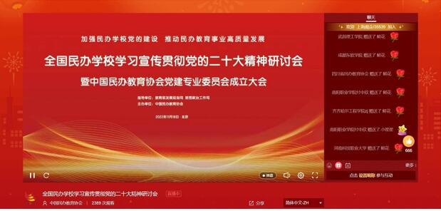 为深入学习贯彻党的二十大精神,加强民办学校党的建设,推动民办教育事业高质量发展,全国民办学校学习宣传贯彻党的二十大精神研讨会于2022年11月18日上午9:30在北京中国民办教育协会举办,人工智能学院组织学院各党支部书记和30名学生党员于15栋315在线观看。