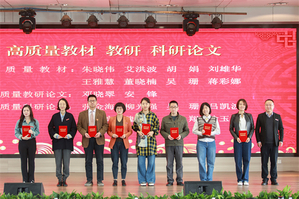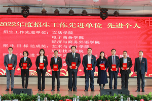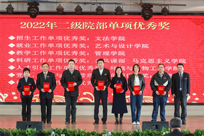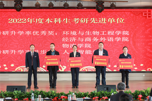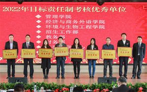 随后,2022年度总结表彰大会举行。李副校长、张俊副校长等领导宣读了《关于2022年学校荣获市级以上奖项和项目情况的通报》《关于2022年校级表彰情况的通报》。学校领导分别为30个奖项获奖的单位和个人颁奖。其中,4个国家级一流本科专业建设点分别奖励80万元。