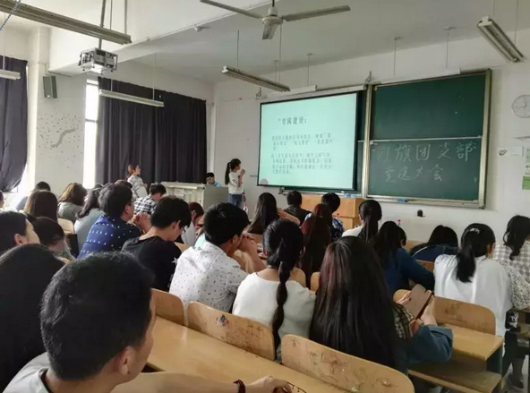 (记者 谭润陶)2016年4月22日星期五中午12:10在综合楼402举行了先进团支部竞选大会。到场的嘉宾、评委有应用技术学院院长张俊院长、熊晓亮院长、朱轶院长,应用技术学院书记孔少敏书记,应用技术学院分团委书记周诗俊老师,应用技术学院老师,喻文老师,应用技术学院教学秘书周澜老师,学生会各部门部长,自律委员会会长李慧琪,各班班长、团支部书记、宣传委员、组织委员和两名优秀团员。参加评选的团支部有市场营销2班团支部、会计5班团支部、会计1班团支部、国际经济与贸易1班团支部、市场营销1班团支部以及计算机科学与技术团支部。