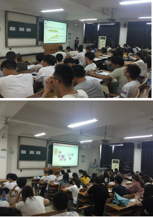 宣讲会一开始,杭州四喜公司的代表人就上台开始了自己精彩的宣传演讲。详细的公司简介,全面的工作岗位以及相关的要求和待遇问题。最后,还采用视频的方式将公司的工作环境展示在了所有人的面前。