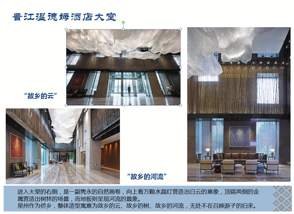 晋江温德姆酒店是连捷集团投资创建的高端涉外酒店,营业面积达47300平方米。酒店提供多元化餐饮服务,以及以“幸福睡眠”为主题新概念客房两百多间/套、顶级贵宾会所、SPA养生会馆、露天花园游泳池、室内高尔夫、健身房等场所,致力于打造以幸福生活为主题的品牌酒店。