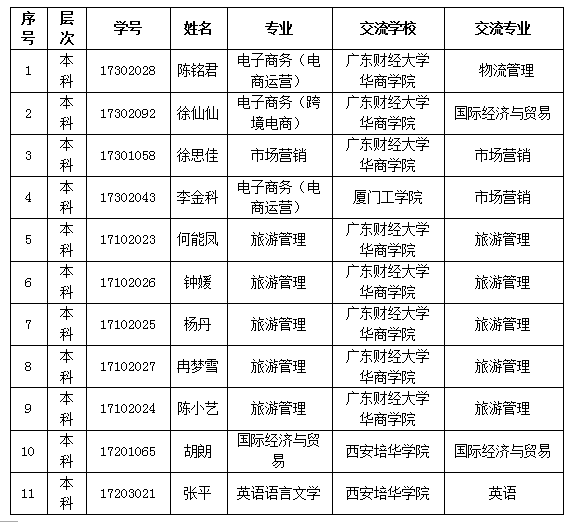 根据必赢优惠y272net教务部[2018]047号《关于开展2018-2019学年第一学期国内高校交流学习项目报名工作的通知》文件要求,经过个人申请,二级学院推荐,学工部、教务部审核,已拟定参与本次交流学习项目的学生名单,现予以公示,公示期为2018年7月5日至7月9日。