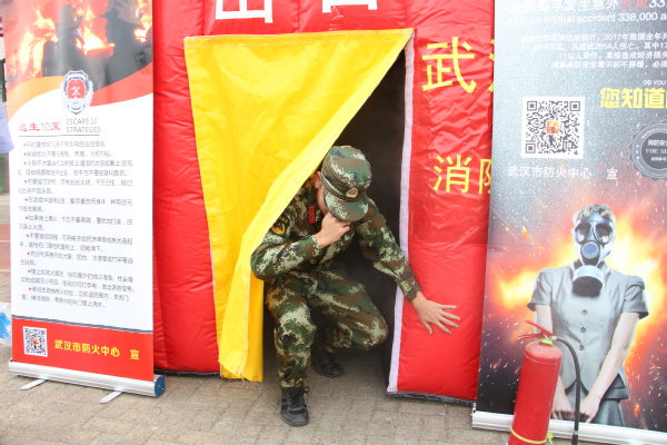 图为模拟火场逃生 摄影:葛诗瑶