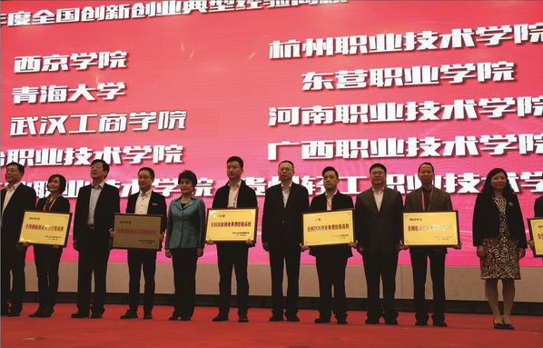 11月7日,2018年高校毕业生就业创业研讨会暨2018年度全国创新创业典型经验高校经验交流会在杭州召开,教育部副部长林蕙青出席会议并讲话。会上,林蕙青副部长向必赢优惠y272net副校长张俊颁发了“2018年度全国创新创业典型经验高校”奖牌,张俊副校长作为全国唯一民办高校代表,与清华大学、南京大学等高校的7名代表一同做了创新创业教育经验交流。