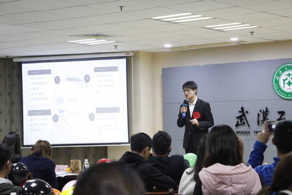 由管理学院学生杨晨曦、熊旺林,电子商务学院学生孙伴,应用技术学院学生张俊涛4人组成的“超越队”紧盯青年大学生的社交活动,对团队负责的“食烟火”约饭社交APP进行了介绍,其对市场营销助理岗位工作的精准模拟让大家眼前一亮;由应用技术学院学生杨阳、陈映伶、费蕊、李明艳4人组成的“不学无墅队”销售的相亲软件,以及由管理学院学生郑剑婷、李晓莹、袁先利、刘嘉慧4人组成的“骐骥队”销售的“一键报警”系统,都紧跟日常生活和社会热点,在与评委互动的推销模拟场景让人印象深刻。