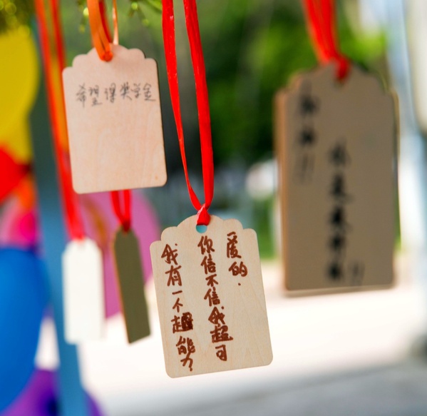在艺术楼主干道上,“你和我的七彩时光”也在火热进行着。在这里,同学们热情参与背对背拥爆气球、七彩心愿树、寻觅宝物、蒙眼游戏等富有创新与活力的活动,尽显青春飞扬的花样年华。