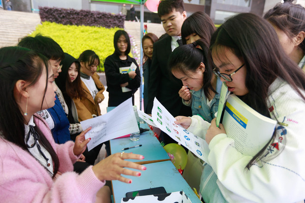 在综合楼侧门主干道上,设置了时下热门的“最强大脑”魔方游戏、“开门大吉”猜歌游戏以及知识竞赛活动,让同学们在游戏中获取新知识、汲取正能量,遇见最美的自己。