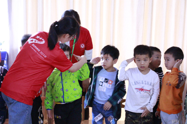 志愿者付倔艺说道,“我希望通过我们的课堂展示与讲解,让小朋友们更多的了解军运会,为武汉军运会贡献一份力量,今年同时也是新中国成立70周年,让我们一起与军运同行,为祖国点赞。”