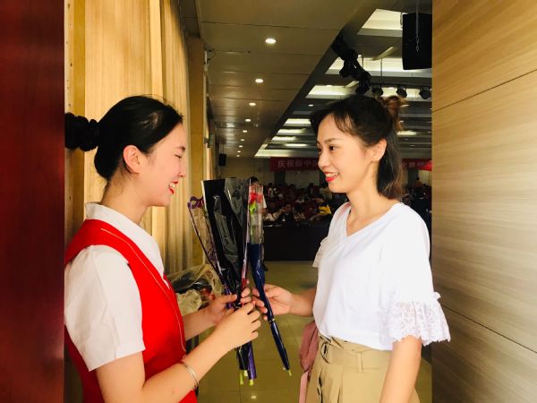 图为现场工作人员为每一位与会老师都准备了花 摄影:李洋洋