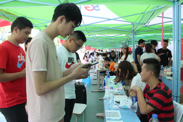 图为软件工程学院新生正在扫码参与抽奖 摄影:冯哲昊