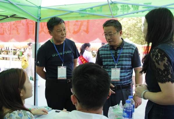 图为刘生元书记、左宗文校助正在了解学院迎新工作 摄影:唐明悦
