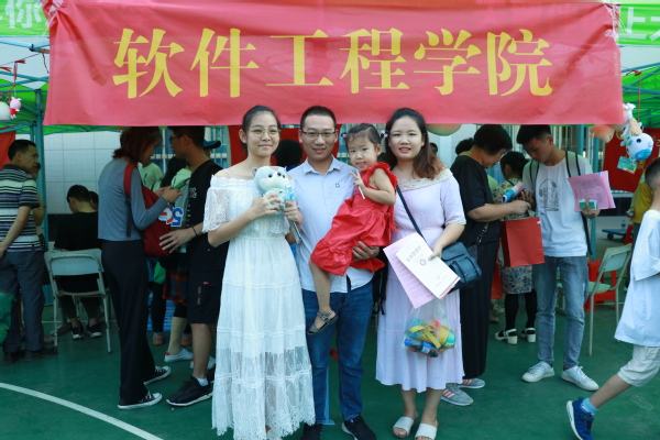 图为软件工程学院新生领取礼物后与家长开心合影留恋 摄影:黄娟