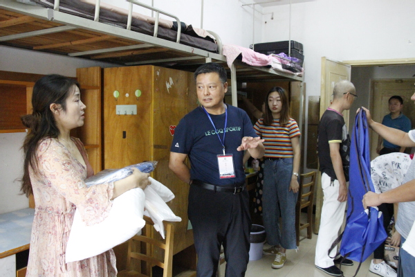 图为刘书记正在学生宿舍与家长交流摄影:唐明悦
