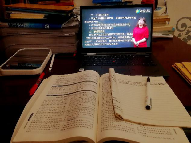 因为特殊情况,让本应该在学校教室、图书馆学习的我们只能在家里自学,这真的是很好地考验了我们的自控能力。没有了学校里浓烈的学习氛围,我也曾一度松懈下来放慢脚步,但是看到学习交流群里的同学们都在积极地上传学习情况,让我自愧不如,大家都能那么努力,为什么我不行?一次次反问自己,联想到自己的专升本和初会考试,我猛然意识到时间真的很紧迫,不能继续浑浑噩噩的。于是我开始调整心态,让自己静下来,制定每周的学习目标,按照以前在学校的作息时间执行任务。万事开头难,但是当逐渐养成习惯后就发现能够以最好的状态投入到学习中。在家里学习也会有一些干扰,对我老说就是还有很多家务事要做,这让我一度压力很大,没办法把学习和生活做到平衡,一度情绪消极。但是经过辅导员谈心引导,我开始学着转换思维,把做家务当成是学习后的放松,边做家务边记单词,动手又动脑,既疏解了压力又做到劳逸结合。现在的我因为目标明确,学习状态更好。