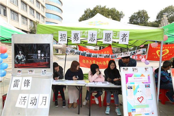 记者看到,在“雷锋活动月”开幕式现场,气氛十分热闹,尤其是支教、关爱自闭症儿童等活动的报名点前,前来报名的学生络绎不绝。