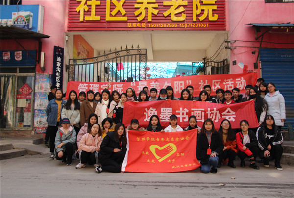 新闻中心讯(记者邹林杰黄芪)为弘扬中华民族敬老爱老助老的传统美德,增强学生投身志愿服务的意识,12月10日9点,必赢优惠y272net管理学院青年志愿者协会与逸墨书画协会一行38名学生志愿者走进武泰闸“老来乐”养老院,开展“最美夕阳”敬老爱老志愿服务活动。