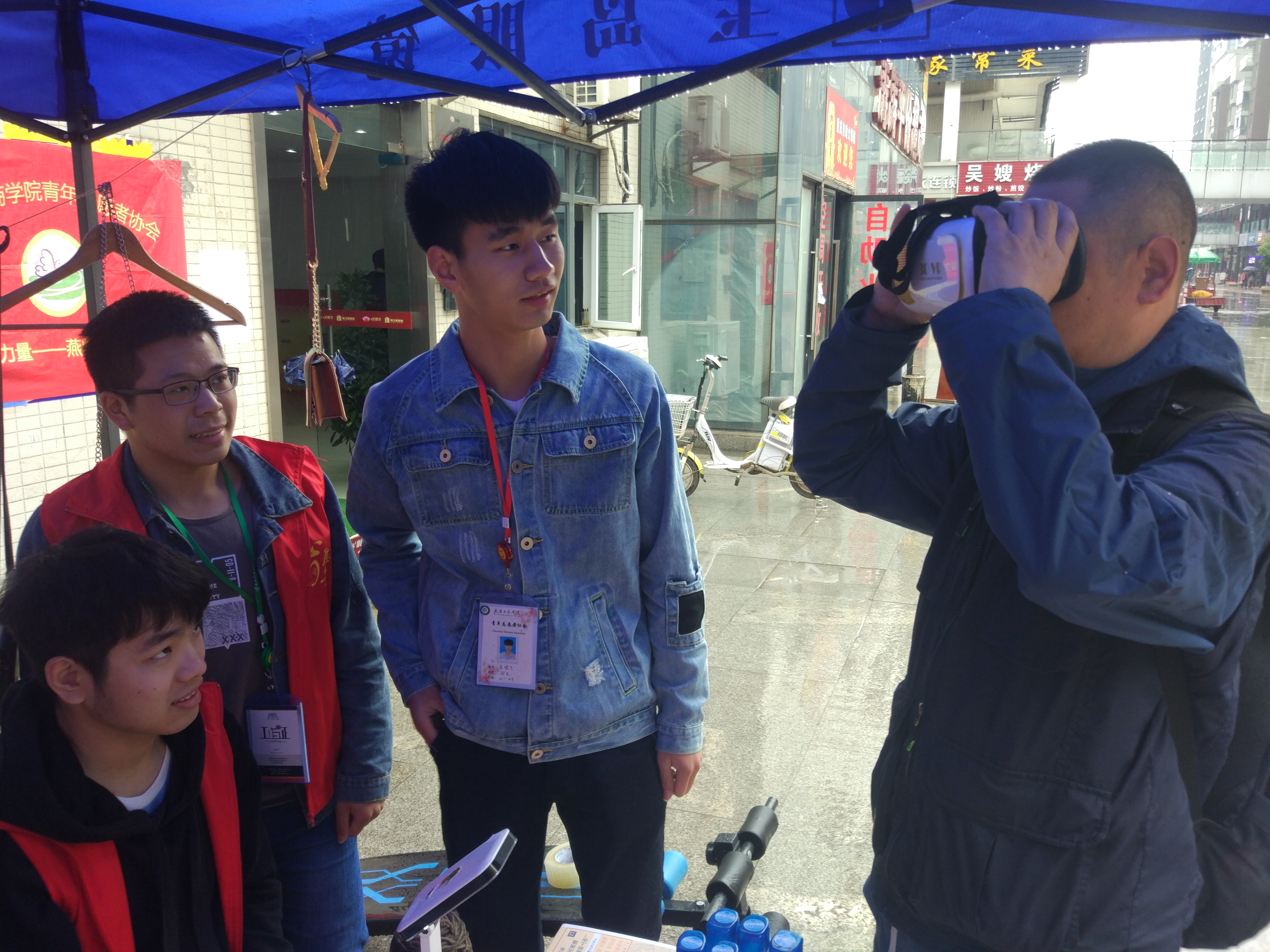 图为社区居民易先生体验VR眼镜 摄影:曲光浩