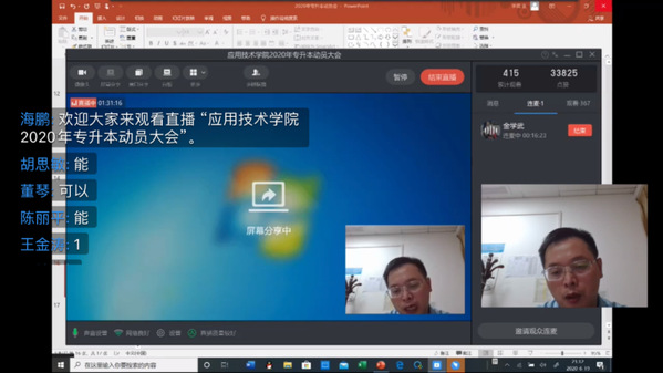 6月,省教育厅正式下达专升本相关政策文件后,应用技术学院通过钉钉直播组织召开了“云端”专升本动员会,在线观看直播的学生人数达到420人,学院领导对今年已发布的招生政策进行了耐心细致讲解,带领大家回顾了前期学生们备考情况,讲解了专升本的优势;还重点针对《省教育厅关于做好2020年普通专升本工作的通知》里专升本的招生对象、报名、考试、录取等内容做了详细讲解,并结合学生们提出的诸多疑问进行了解答,帮助学生更好地了解今年专升本政策上的变化,让学生知晓获取专升本信息的渠道,往届升本成功的同学也作了相关经验分享。